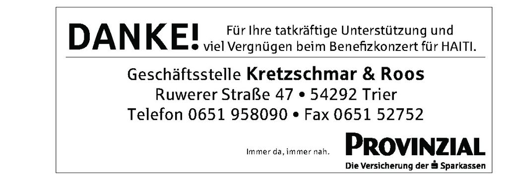 Überlegung in Trier ein Benefiz-Konzert für die Erdbebenopfer in Haiti zu organisieren. Die Trierer Nothilfe sagte sofort ihre Unterstützung zu.